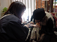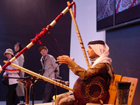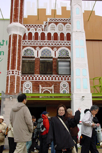 ループ沿いに歩き始めグローバルコモン1から入場開始。陽気なダンスに誘われイエメン館・イラン館の装飾品販売にうんざりしつつも、串焼きを頬張り、娘は甲にデザインを描いてもらい、ハープの演奏に聞きほれ、絨毯にも見取れました。