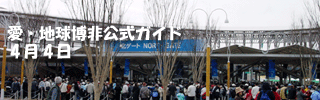 2005年4月4日:弁当解禁、雨上がりの月曜日、強風気温低下が予測され、今日は空いているはずとでかけました。あにはからんや、リニモは30分待ちの行列、北ゲートは溢れるばかりの人人・・・。行列は飛ばし、乗り物を使うようにしてがんばりましたが結局は1/3程度しか体験できませんでした。