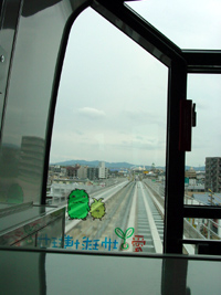 行列の果てに乗り込んだリニモでは、幸運にして最後尾車両で座れました。確かに音は静かですが、浮揚感はなく、カーブや発車時、停車時のスピード調整には配慮が必要でしょう。つり革が必要です。