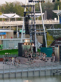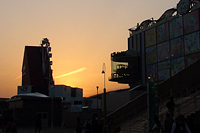 愛・地球広場では元コメコメの石井氏演出のダンス劇が行われており、ドイツレストランで夕食を摂りながら遠目に見る。