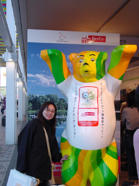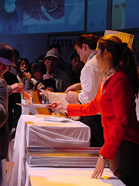 気に成っていたスペイン館ではイベリコ豚の生ハムとワインのサービスがあり、袋の中身はワインの小型ボトル。併設レストランですかさず盛り合わせとワインでいい気持ち。まったく思う壺にはまりました。長蛇のドイツ館もこの時間ならすぐに入場でき、ジェットコースターに乗りながらの会場案内に大満足でした。 |