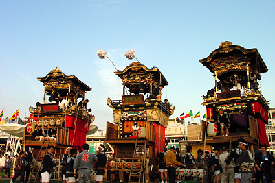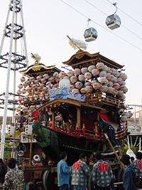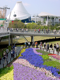 | 愛・地球広場も大層にぎやかで関係者が提灯を下げ始めていました。 |