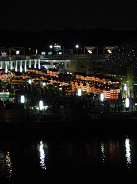 夕食はループの内側向きで高台で眺望の良さげなアサヒのレストランに並んでみた。座席に案内された後はセルフで行列が長い。並ばずにありつける「うな丼」を食べたが、関東風のどうにも頼りない食味で、この地域に出店するなんて良い度胸だと思った。 |