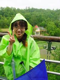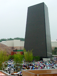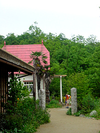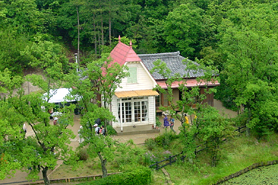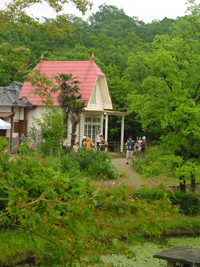 2005年6月11日:日本庭園をすすむと予約騒動で大騒ぎの「サツキとメイの家」でした。別にどうということもなく森の中に建っています。実は前回もハガキは出しましたがはずれでした。つらつら眺めるに、他のパビリオンと比べて余裕ありすぎで腹立たしいかぎりです。まったく協会は何を物指しにしてることやら。もったい付けているだけでは民意が納得しませんぞ。