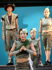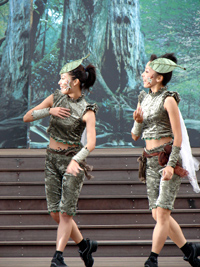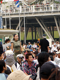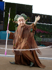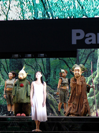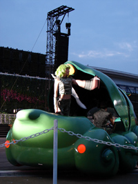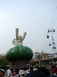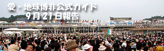 2005年9月21日:5時になり愛・地球広場もご覧の通りの大盛況です。何度も来ており、夕方には必ず横目で見ていたがきちんとみたことがなかったカールスモーキー石井プロデュース「森の妖精」のミュージカルを前から2列目で見ました。 |