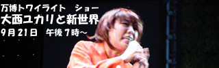 2005年9月21日:7時になり愛・地球広場も「大西ユカリと新世界」マニアが前列を占め大盛況です。8月の大阪デーには法事で参加できず残念な思いであったがこれで何だかスッキリと万博の閉幕が迎えられそうです。 |