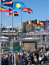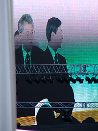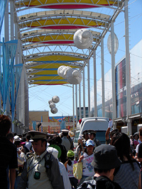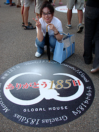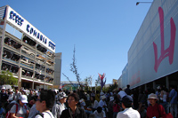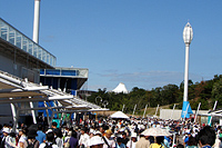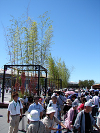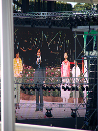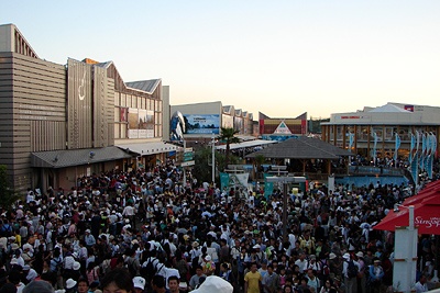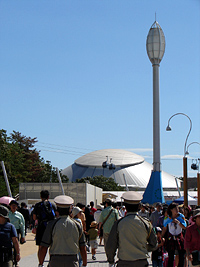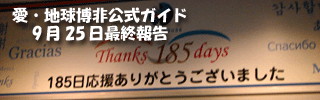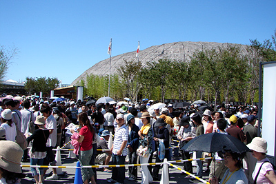 | 弁当を日本庭園でのんびりと広げ、ここは残ると思うと安心。閉会式が始まる頃と、愛・地球広場へ向かう、これまた見たこと無いような人人で埋められ、止む無くループ途中の手すり越しに大画面をみる。やっぱりアヤヤは可愛らしく、皇太子も映し出され大満足でしたが、愛子ちゃんを連れてこられなっかた事を悔やむ。 |