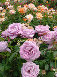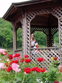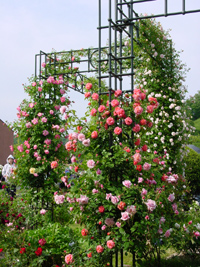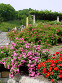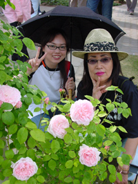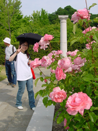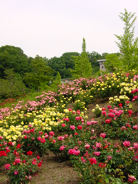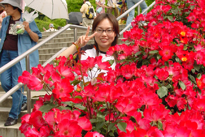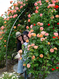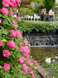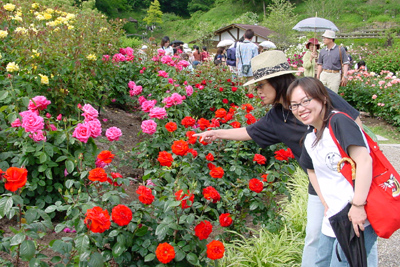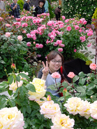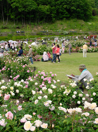 | 園内は超満員でも敷地が広大で、真っ盛りの色とりどりのバラが美しく、濃厚なバラの香りにも飽きさせません。 |