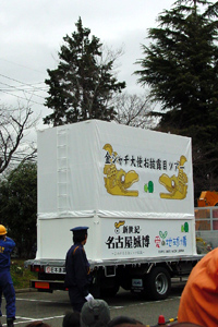 2005年3月23日:名古屋のシンボルにして名古屋人の心の拠り所「金シャチ」が愛・地球博の守護神・親善大使として出張するこことなりました。出陣に先立ち、全区にお披露目があり、瑞穂区には「雌シャチ」がお出ましでした。