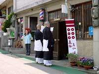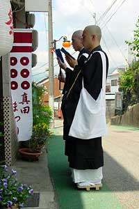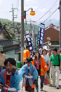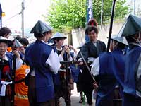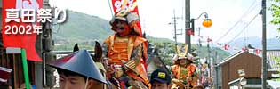 2002年5月5日 子供の日恒例の「真田祭り」が、まずまずの天気で行われました。午前中から、高野山大学の学生による托鉢が九度山の町中で見られました。
