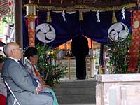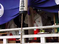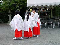 舞姫による浦安の舞が奉納され、町内を練り歩いた神輿も帰り、神輿渡御の神事待ち。午後からはカラオケ大会です。