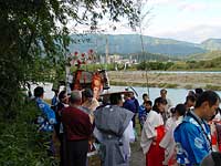 この石段が人で埋め尽くされるのは初めて見ました。河原には結界が準備されており、形通りの祝詞をあげ、神事は無事終了しました。盛り沢山のお祭りも終わり、日暮れまじかまで秋の日を堪能しました。