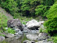 2002年5月4日 丹生川の中流域、玉川峡にダム建設計画があることから、その影響を実感したくて「玉川由来記」に記載のある「玉川四十八石」を探しに、娘と東京暮らしの義弟を道案内に出掛けました。