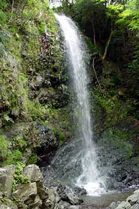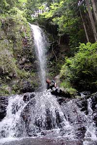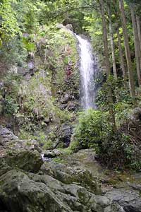 丹生の滝 高さ十三間半、銚子口二尺。道路から一寸登った場所にあり。モミジが多く紅葉の見事さを予感させる