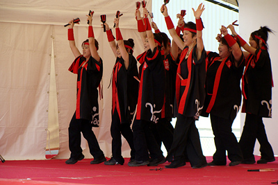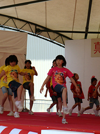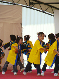 2008年5月4日:買い物のついでに町民広場に立ち寄りました。チビッコ達で大盛況でした。今年はステージで「やっちょん」(よさこい踊り)の発表会があり、掛け声も勇ましく踊りが披露されました。