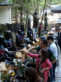 2008年5月3日:高野山へ電車で行ってみました。電車は超満員ラッシュで極楽橋からのケーブルは臨時増発でも追いつかず大騒ぎでした。バスを利用しましたが結構歩きます。金堂や金剛峰寺を見て廻り、桜が満開だったり、奥の院も大賑わいでした。帰りにはケーブルの擦れ違いも見れました。