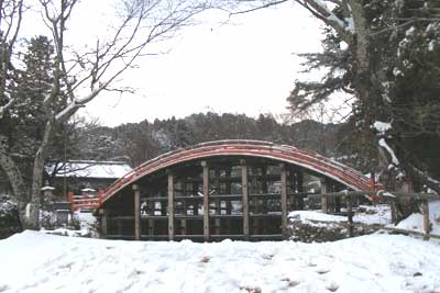 丹生都比売神社へ参りました。さすが天野には雪があり一層の厳粛を感じました。甘酒をいただき御神籤を引き、赤い太鼓橋に積もった雪景色を愉しみながら帰路に着く。