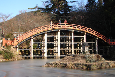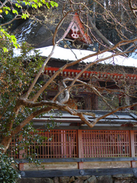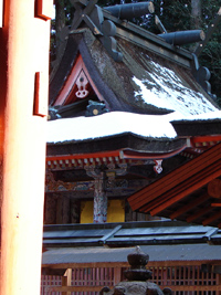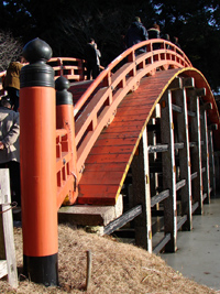 2006年1月1日:昨年来の寒波を警戒しながら天野の丹生都比売神社へ初もうで。凛とした空気の中、善男善女の行き交う参道はみな笑顔なことに気が付いた。たおやかな曲線を持つ朱塗りの橋を支える橋脚の池の氷は今年も凍っていた。