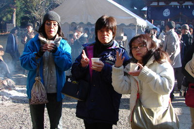 雪に霊験を感じつつ、さまざまなお願い事を聞き分ける神様に敬意を表しながらいただく振舞いの甘酒は、全身に染み入り新たな活力を与えてくれ、おみくじの「吉」を良しとする。