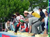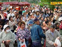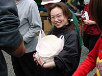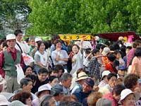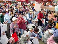 町民グラウンドと真田庵では恒例餅まきが行われます。