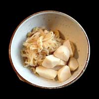 切り干し大根の田舎くささが好きな人は、大根のもどし液をダシに加えるとよい。ショウユは淡口醤油を使うと、あっさりとした色合いになるが、以外と塩分が多いので塩加減は注意が必要。