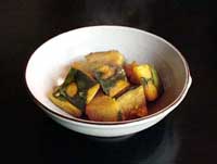 おとしぶたはアルミホイールですき間のないようにするとよい。まだかたい内に汁気が無くなったら酒を加えても良い。あまりかき回すと、固い皮の部分と実の部分がはがれるので注意が必要。面取りは一部でもよいからしておくと、形が崩れないと同時に見た目もよくなる。だし(又は水)の量は多くならないよう、かぼちゃの半分以上が、だしからでるくらいが適量。煮るより蒸し炊く容量でするとよい。