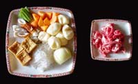 その他の材料の下ごしらえは写真を参照ください。牛肉は適当な大きさに切り分け、酒を少量ふり、ほぐす。