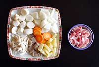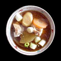 とん汁は具がたくさんあるほうが、おかず的になって、一品だけでも栄養のバランスもよく、他のおかずがいらないくらいだ。だだ、煮込むうちに汁気がなくなるのでだし汁を多い目にし、味がうすくても具と汁をたっぷり食べるのが楽しい。多い目につくって、翌朝ご飯にかけておじや風にしても、とてもいける。味噌や塩味はなるべくうすく、汁も健康を気にせずいただけるようにしたい。野菜や他の素材の味も楽しめるし、うす味には案外簡単に慣れる。家族そろって生活習慣病に注意しよう。