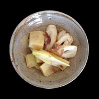 皮つきの筍をスーパーなどで買う時、先の緑より黄色を選ぶとよい。こぶりでも中身はやわらかく、早く炊きあげられる。先が緑はすでに地上にでているので、中身が固くなっている場合が多い。