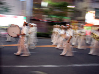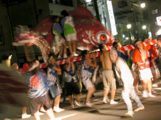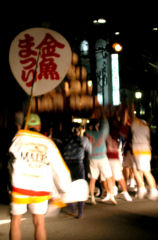 夏祭りの季節だ。中川区尾頭橋商店街の中川金魚祭りも今年で50回を数えるとのこと。宵祭りに出かけた。消防隊、警察隊のブラスをはじめ、中高女子のブラスとバトンで場を盛り上げ、ミス金魚まつりのオープンカーによるパレード、神輿行列、おどりと盛り沢山だった。実は最後の特別出演の韓国の農楽グループ「