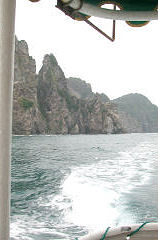 今日の行程は祝津港よりオタモイの断崖絶壁(ニセコ・積丹・小樽海岸国定公園)の周遊遊覧と鰊御殿の見学。残念ながら天気は思わしくなく、午後から降り出した。