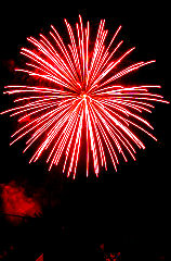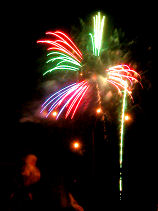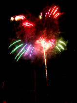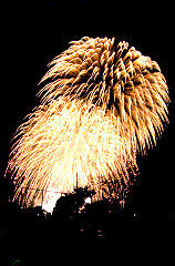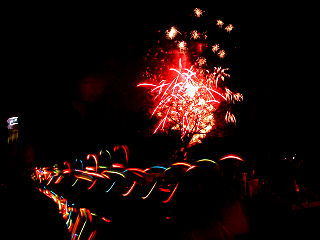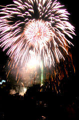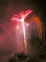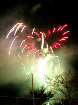 毎年恒例となった花火見物、今年も老谷のバンガローから馬瀬中学校校庭へ。見物客も年々増え3万人以上とのこと、場所取りが益々大変で、花火の始まる前に出来上がってしまう。