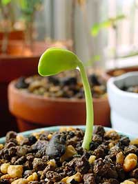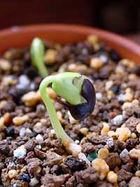 12月6日:中身は真っ黒けのこんな実でした。すぐに蒔いたら1週間ほどで発芽。なにやらネジ曲がっていますが幹も太くかなり生命力の強い樹になりそうです。