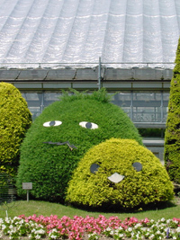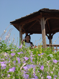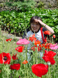 2005年5月31日:昨年から始めた「ベランダ里山化計画」の一環で植物園を参考にすべく見学しました。実は桜の園ではサクランボが熟し頃と判断し、サクランボ拾いに出掛けました。オオシマやらコヒガンやら難しい樹名札の前で懸命に探しましたが、早かったり遅かったりで思いようにはゆきませんでしたが、お花畑は見事に真っ盛りで大満足でした。