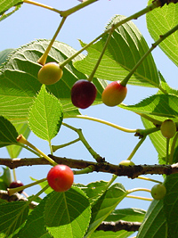 モリコロに出迎えられハスの花に気をとれながらも一路「桜の園」を目指す。生っているサクランボは実に愛らしい。