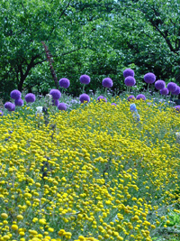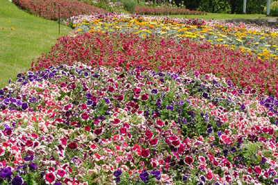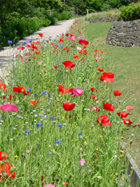 サクランボ拾いもそこそこにして「お花畑」を散策。各種の花が見事に咲き誇り豪華絢爛。