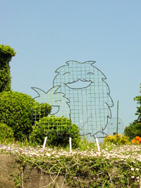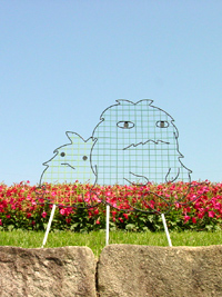 お花畑にはイロイロなモリコロが配置してあり、見上げるように青空バックに映えます。