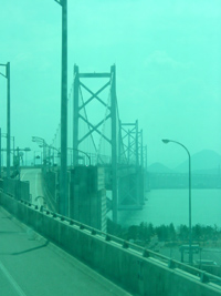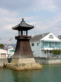 バスの窓越しではスケールも風情も出ず残念です。わずかに児島港の常夜灯に今昔の思いをはせる。