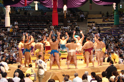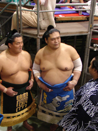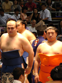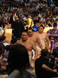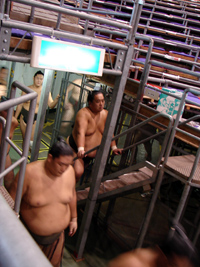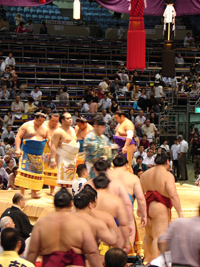 | 幕内の土俵入り前にみんな談笑してリラックスしていた。 |
