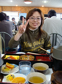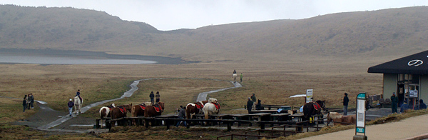 阿蘇草千里で昼食。あいにくのお天気ですが阿蘇の雄大さはそこなわれれません。
