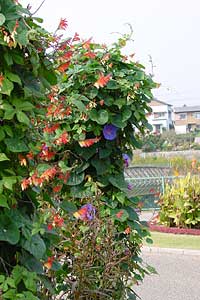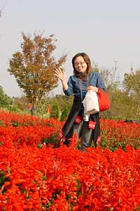 風車の広場には安城市の花「サルビア」の仲間が数十種が咲いています。