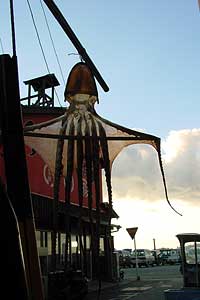 「干したこ」は正月二日、船の乗り初めの時に供える神饌で、蒸し戻し、酒を染込ませ細かく割き食す。これが結構うまいらしく酒がすすむとか。 日間賀は思った以上の漁港で、すまじい漁船の数に驚きました。一家に2〜3隻の船を持ち、たこ、ふぐ、ちりめんじゃこ、あさりが特産です。