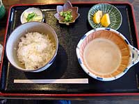 お昼は「母さんの店」でとろろごはんともみじ定食。雑穀ととろろが季節を感じさせます。