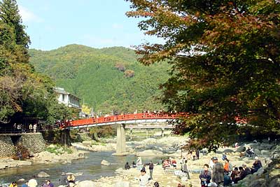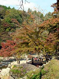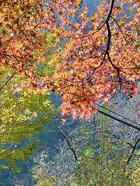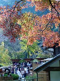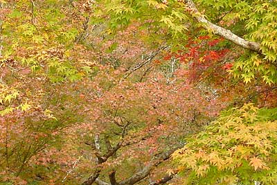 2003年11月15日:午前中の晴れを信じて香嵐渓の紅葉を取材しました。今年の天候異変は紅葉にも影響がありそうで、遅れ気味なのか何だか赤味が薄く感じられました。