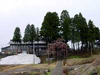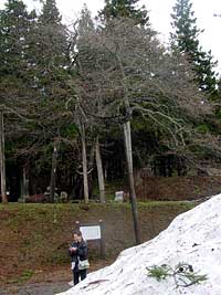2003年4月24日:山形から月山ICで降り、注連寺へ向かう。寺は雪囲いのままで絵にならず。月山スキー場は4月からオープンらしい。雪の深いところである。境内の七五三(しめ)さくらは残念ながらまだ咲いていない。