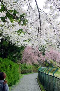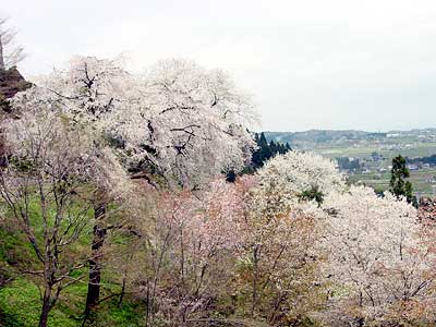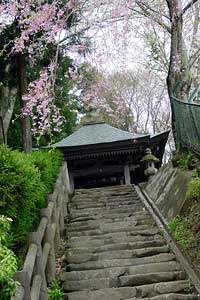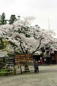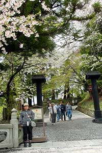 平泉中尊寺・月見坂に到着。参道は満開のさくら、カタクリの花とフキノトウ・水芭蕉が歓迎してくれました。