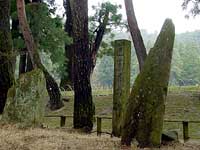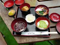 毛越寺(もうつうじ):850年中尊寺と同じく慈覚大師の開基。藤原四代の頃は金銀ちりばめ伽藍、堂塔40、僧坊500が立ち並び、吾妻鏡に「荘厳並びなし」と記された。今も庭園の池に杯を浮かべ、流れにあわせ和歌を詠む「曲水の宴」が行われます。境内の茶屋の「もち定食」はずんだ、あずき、しょうが汁、雑煮の順にたべました。