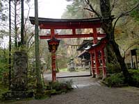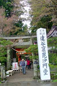 2003年4月26日:ようやく雨も上がり達谷窟に到着。毘沙門堂縁起いわく蝦夷の頭目、悪路王(アテルイ)、赤頭、高丸等を801年(延暦20年)に激戦の末征伐(本当は和議にかこつけただまし討ち)。戦勝は毘沙門天のご加護と感じ、京の清水の舞台作りをモデルに創建。百八体の毘沙門天を祀りました。この功績により田村麻呂は征夷大将軍の称号をえました。
