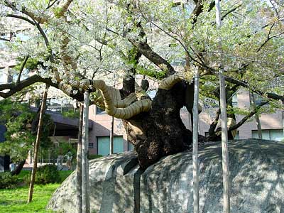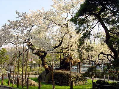 2003年4月28日:久慈から盛岡に出ました。3時過ぎでしたが、早速石割さくらを見に出掛けました。見事に石を割った満開のさくらの根元に観光客はみな驚嘆の声をあげています。