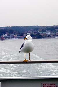 2003年4月23日:小雨もようでしたが朝一番の遊覧船に乗り島巡りをしました。物ほしそうなかもめが印象的で、ヒッチコックの鳥を連想してしまいました。湾内は奇岩の連続で飽きさせません。